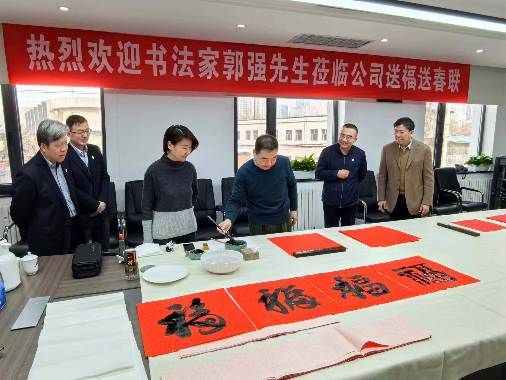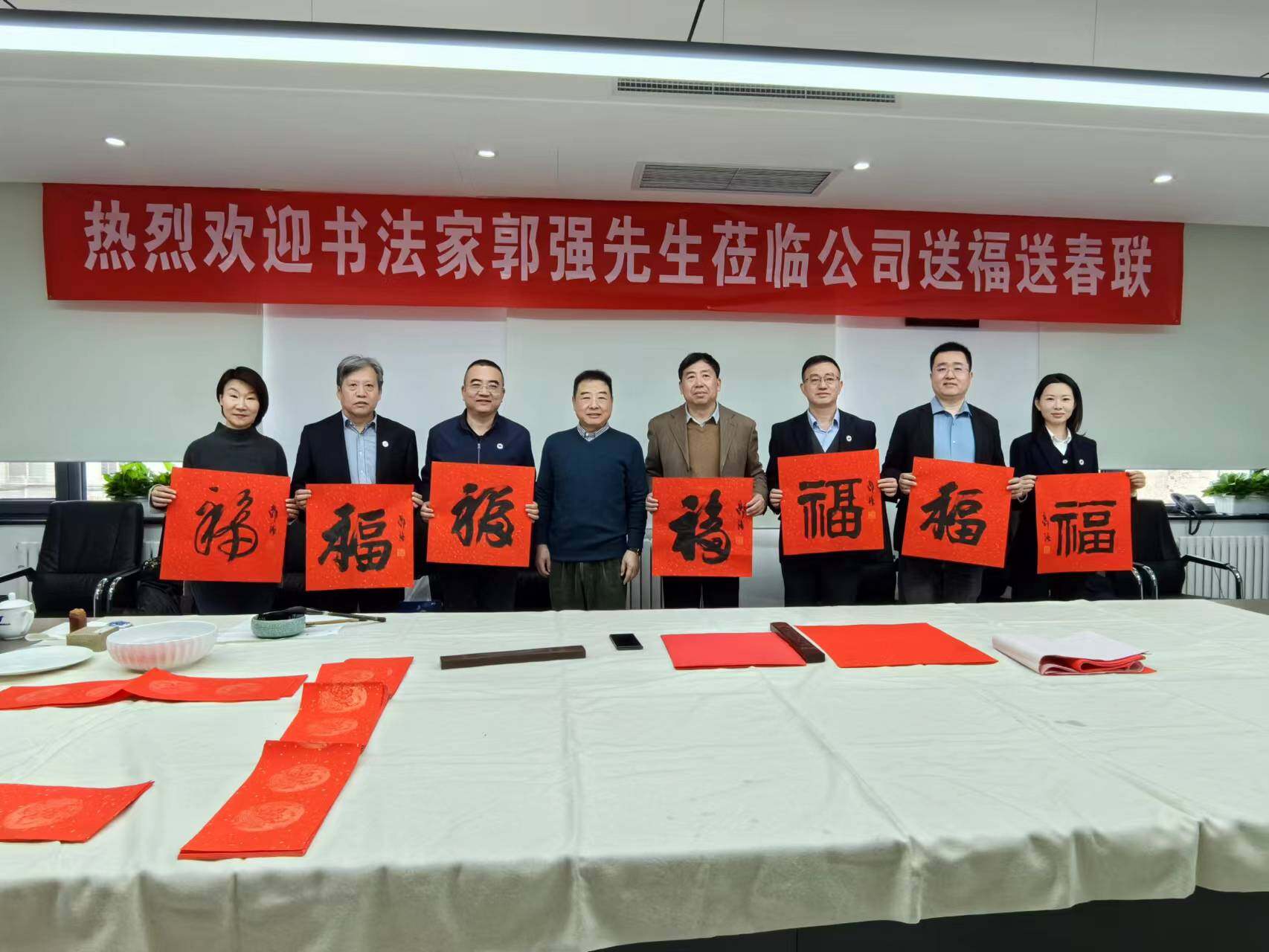 2月4日上午,在新春佳節即將來臨之際,我司榮幸邀請到了著名書畫家郭強先生蒞臨我司,為全體員工送福送春聯,帶來了一場別開生面的文化盛宴。公司董事長王明輝、副董事長宋建國、總經理馬躍等領導及機關員工參加了此次活動。