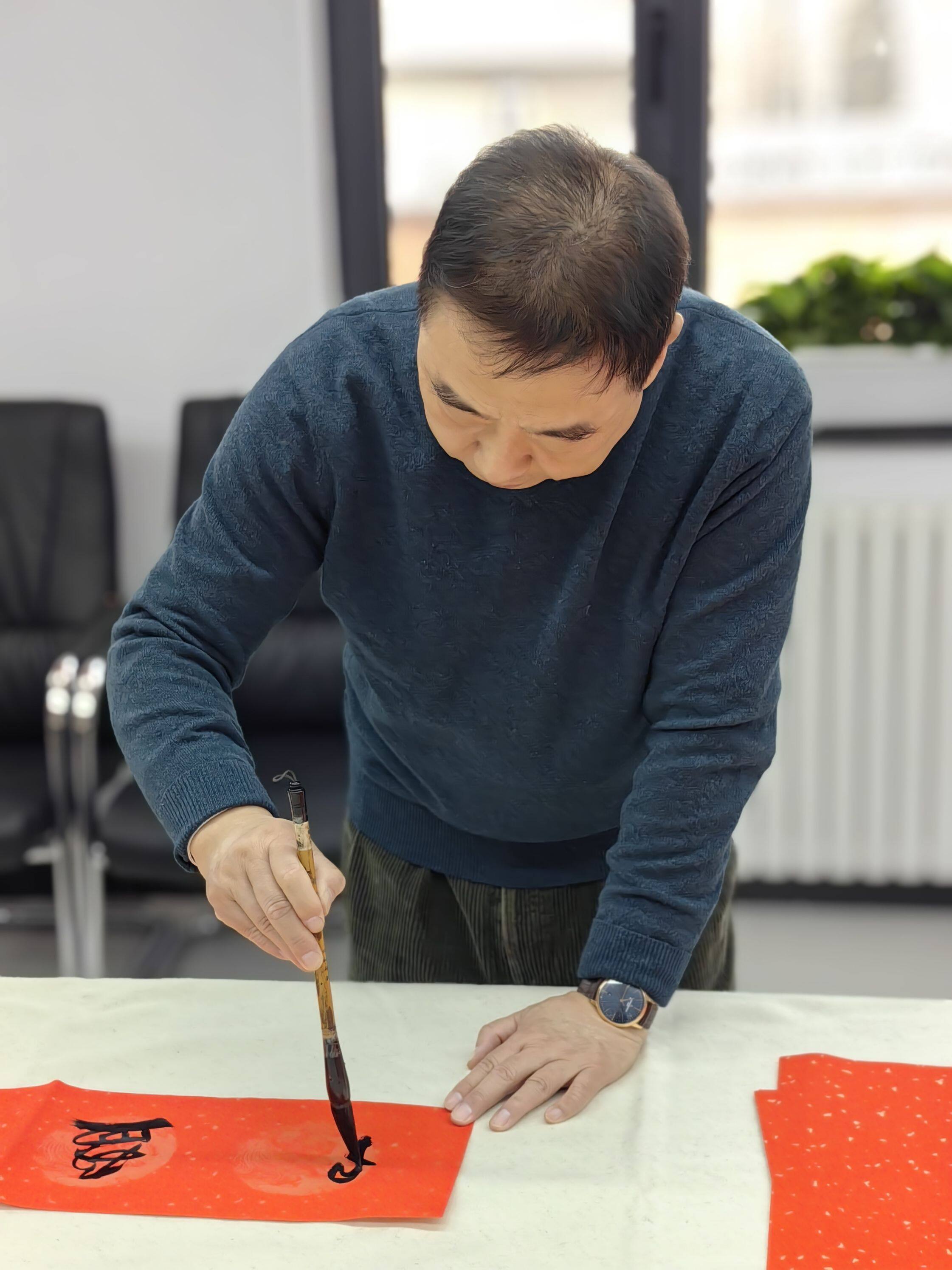 活動現場,郭總揮毫潑墨,筆力遒勁,墨香四溢。他親自為公司員工書寫了富有個性化、寓意吉祥的春聯,以及形態各異的“福”字。一幅幅精美的書法作品,不僅展現了郭強老領導厚實的藝術造詣,更傳遞出他對電話工程公司的關愛和祝福。公司員工們紛紛圍觀,為其精湛書法藝術贊嘆不已。