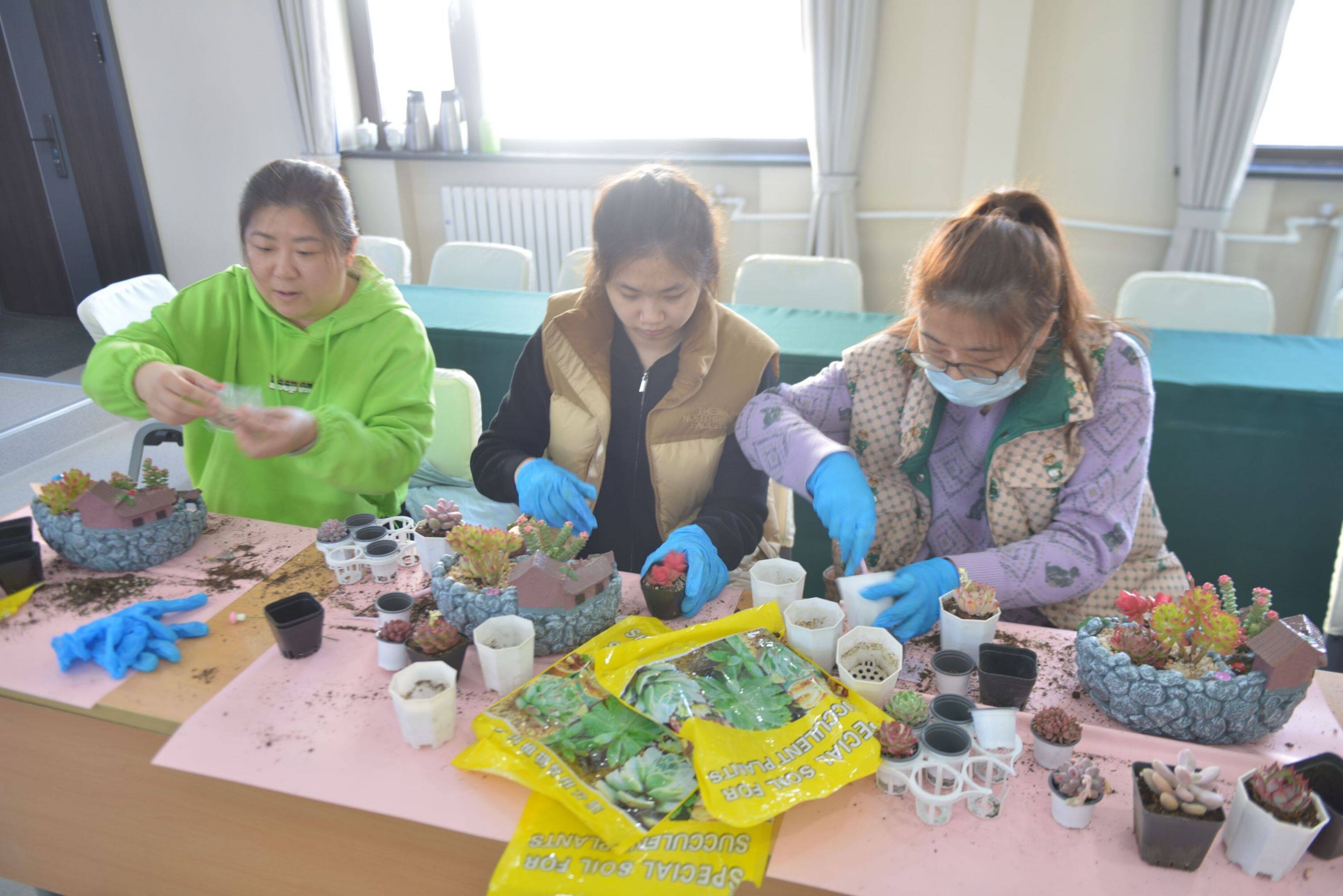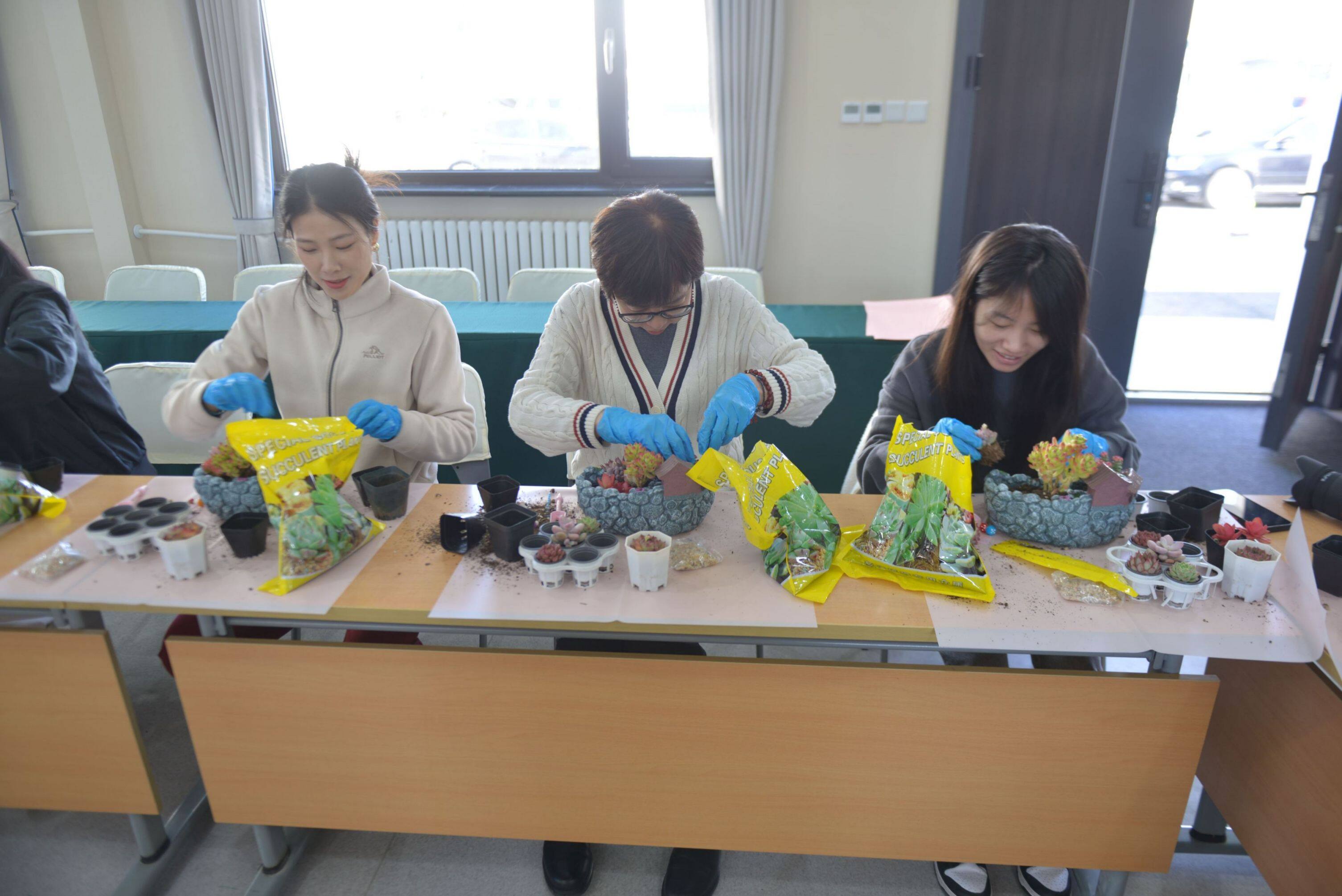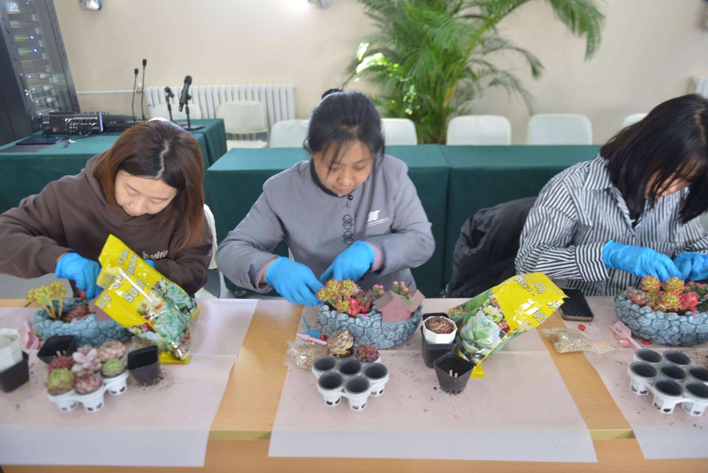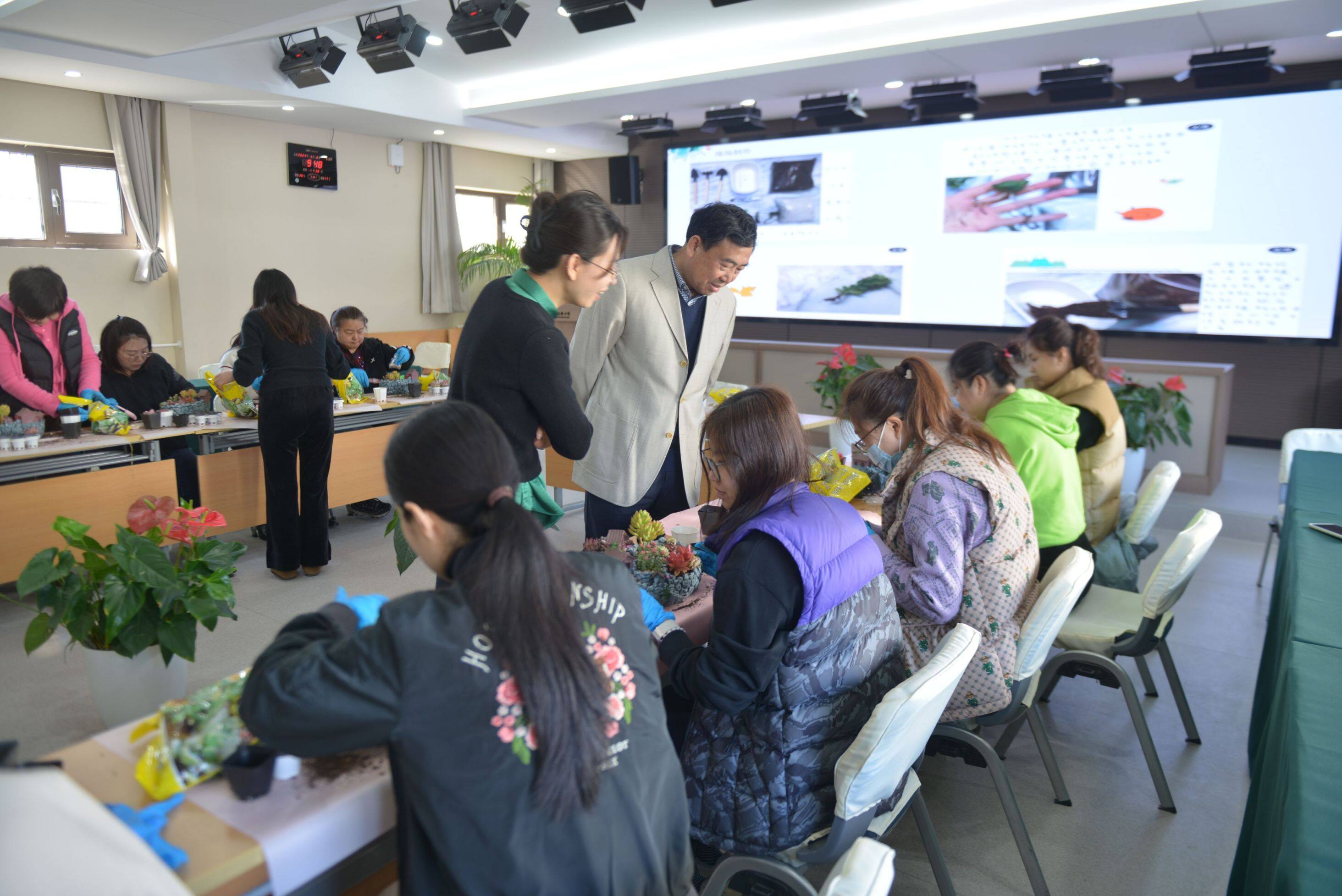 活動(dòng)現(xiàn)場(chǎng),專(zhuān)業(yè)老師詳細(xì)講解了多肉植物的相關(guān)知識(shí),包括多肉植物的種類(lèi)、生長(zhǎng)習(xí)性、養(yǎng)護(hù)技巧等。女職工們聽(tīng)得津津有味,對(duì)多肉植物有了更深入的了解。隨后,大家親自動(dòng)手積極參與到DIY過(guò)程中,制作屬于自己的多肉植物復(fù)古花園庭院。女職工們充分發(fā)揮創(chuàng)意,從挑選植物到設(shè)計(jì)布局,再到親手栽種和裝飾,打造出一座座充滿藝術(shù)感和生命力的花園庭院。