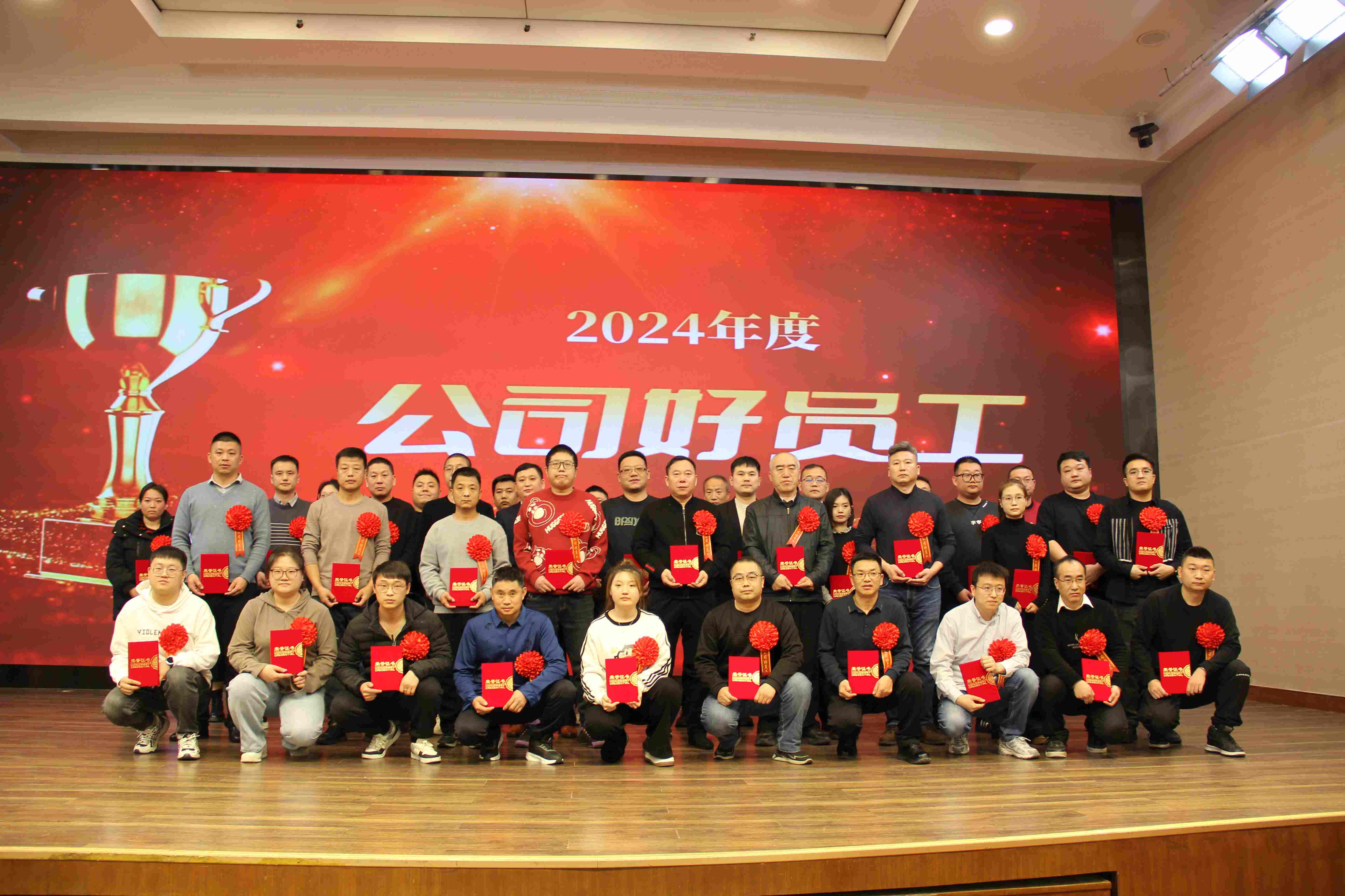 黨支部書記、副董事長宋建國宣讀《關于表彰2024年度先進集體、公司好員工的決定》,經考核評議和綜合研究,8個集體被授予“2024年度先進集體”榮譽稱號;48名同志被授予“2024年度公司好員工”榮譽稱號;10個單位被授予“2024年度突出貢獻獎”榮譽稱號。公司領導班子成員向獲得榮譽的單位或個人頒發證書和獎品。