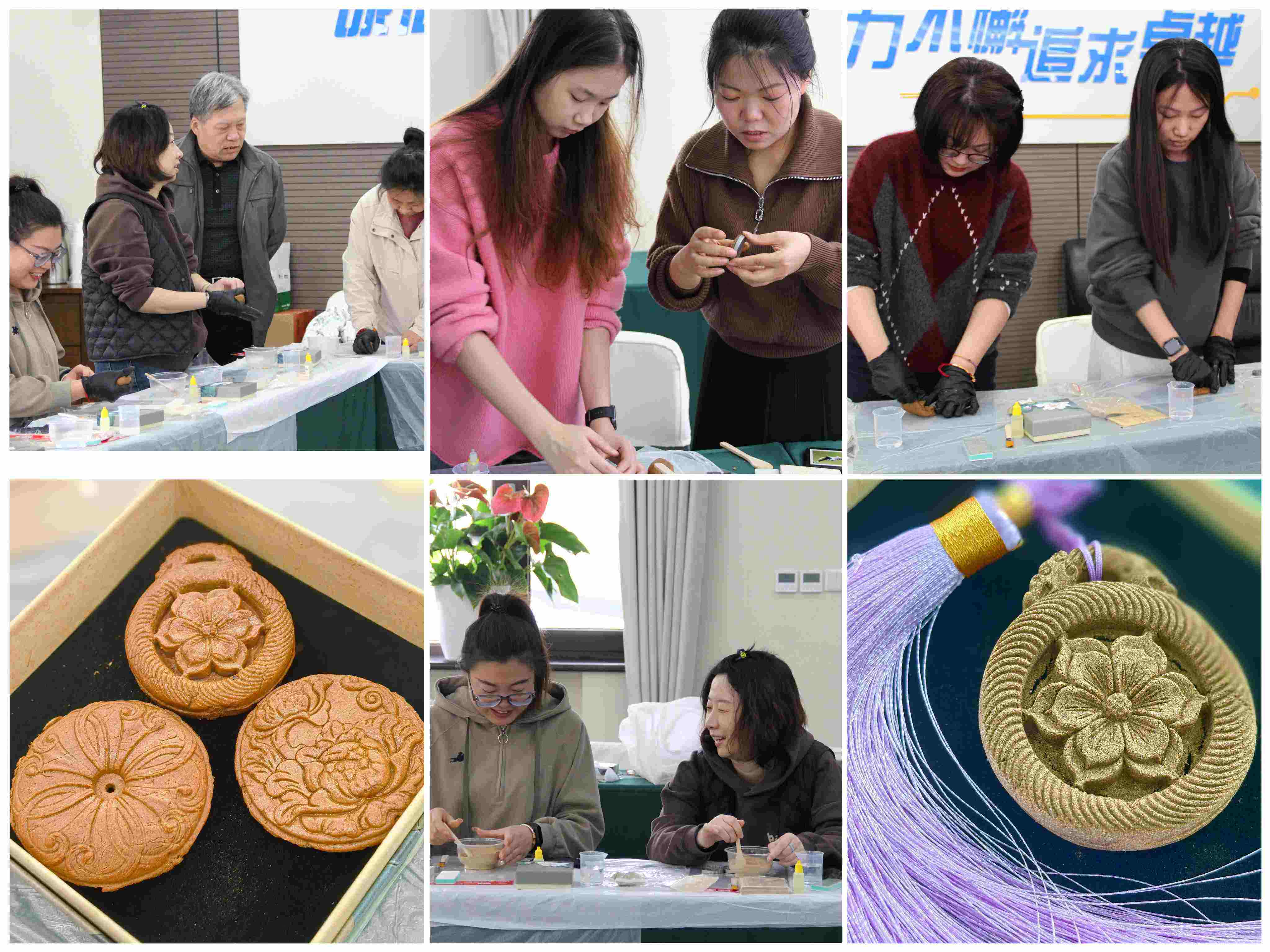 專業(yè)老師受邀前來,為大家詳細講解香牌的制作過程。從香料的甄別、選用,到如何依據(jù)古法精心調(diào)配,再到一步步將香泥塑形、雕琢,每一個環(huán)節(jié)老師都耐心示范、悉心指導。公司女職工們沉浸其中,專心調(diào)配檀香、沉香等天然香料,經(jīng)過揉泥、塑形、陰干等工序,將平安扣、如意紋等傳統(tǒng)紋樣化作一枚枚承載美好寓意的香牌。